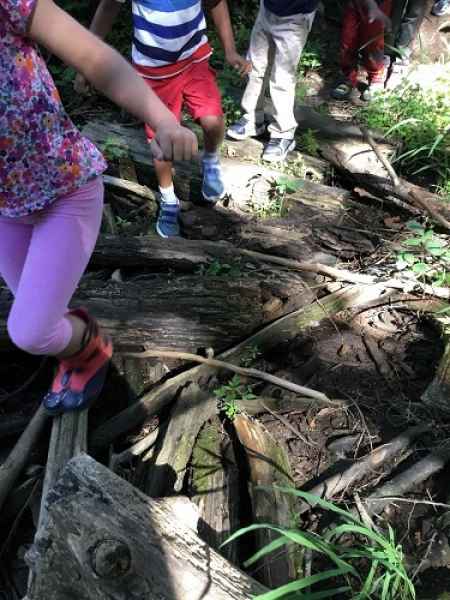 The preschoolers have been interested in exploring the neighbourhood around our center. To help extend this curiosity, we have been taking regular walks. Children have a say in the direction we go and each walk has led us to a different path to explore. The outdoor environment is our third teacher by letting us observe and explore what we find along the way. Many of the children have been very interested in picking up sticks and collecting rocks. They are excited to bring back their treasures and share what they have found.